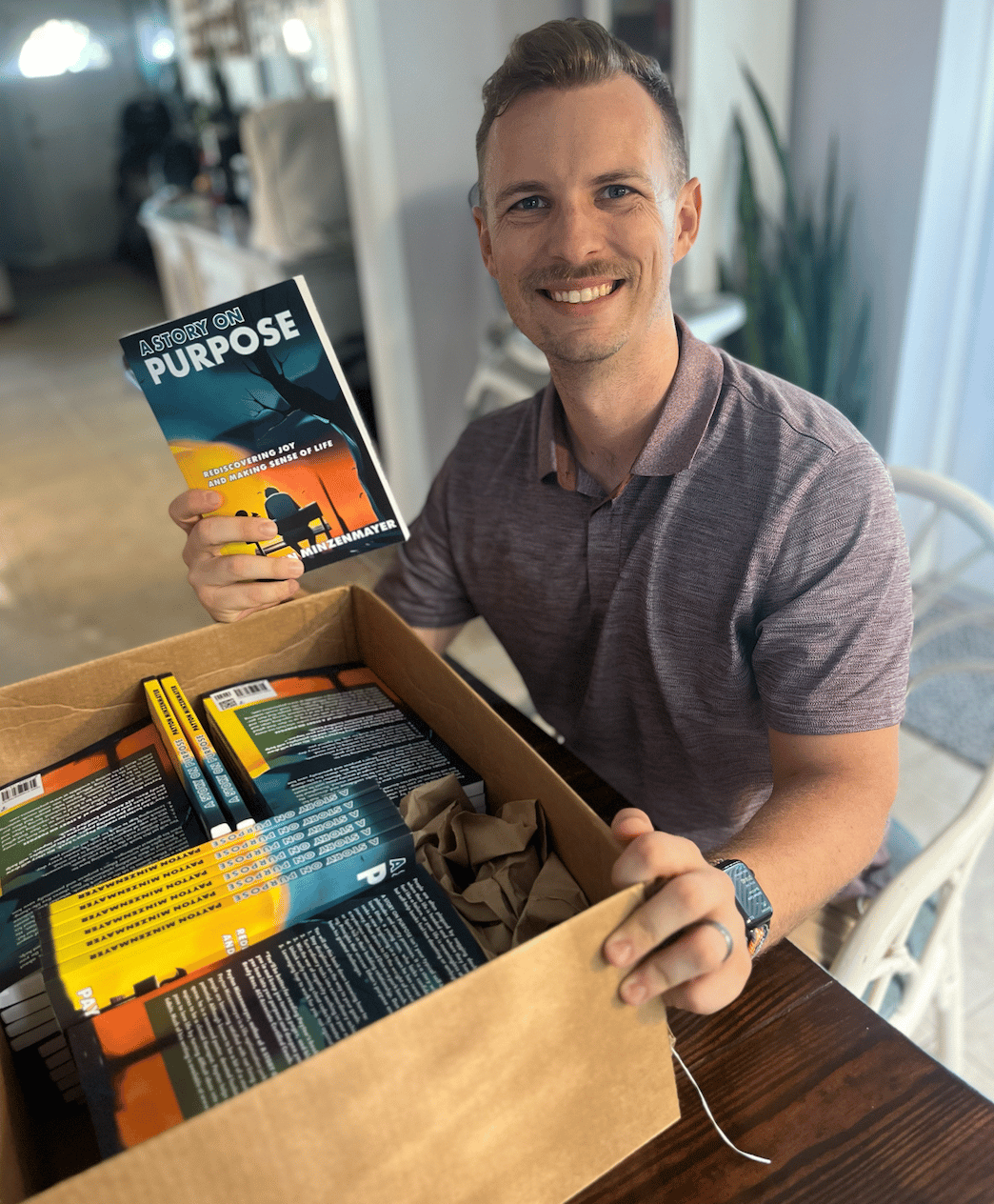 A box filled with over 100 copies of my first book.