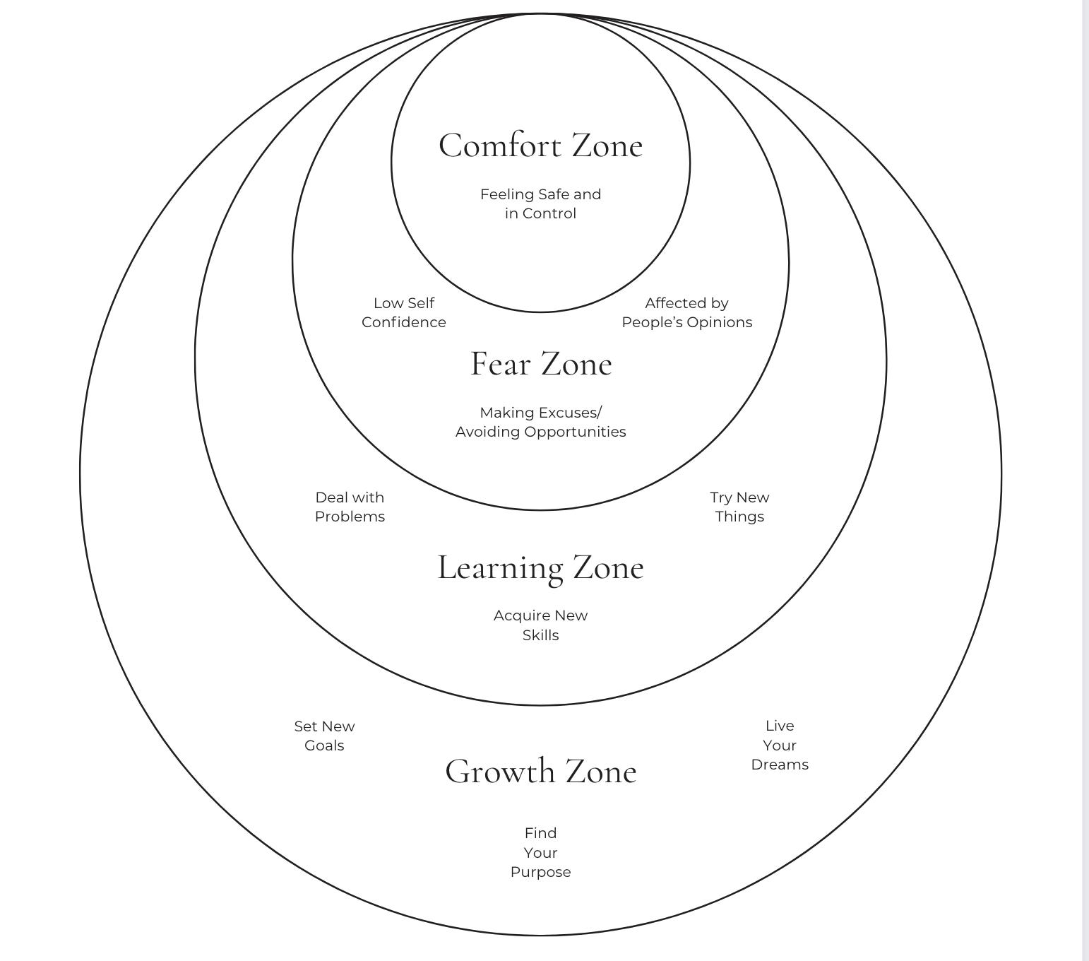 Growth only happens outside of the comfort zone; it's why muscles have to tear and minds have to strain to develop strength. There are two primary responses to fear: a) you can recognize it and face it immediately, or b) you can recognize it and run from it. Either way, you know fear is there, and you have a choice if you are going to grow or stay comfortable.