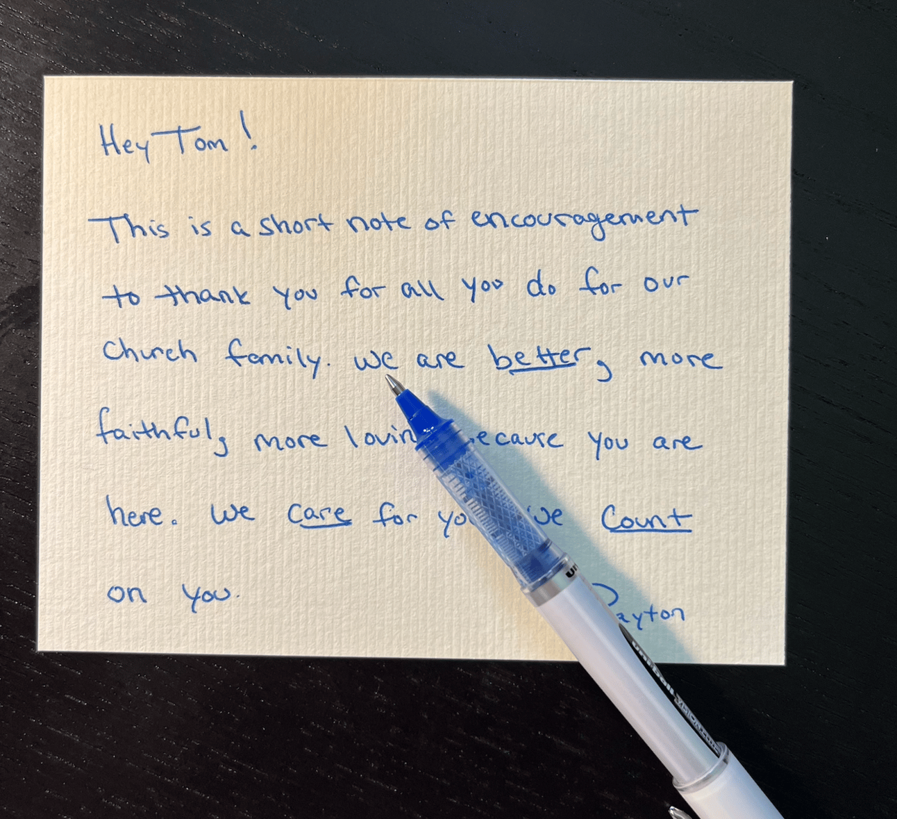 One of the most impactful things I've done this year as a pastor is write a personal letter (complete with envelope and stamp) to every member of our church family. Sometimes basic is the novelty.