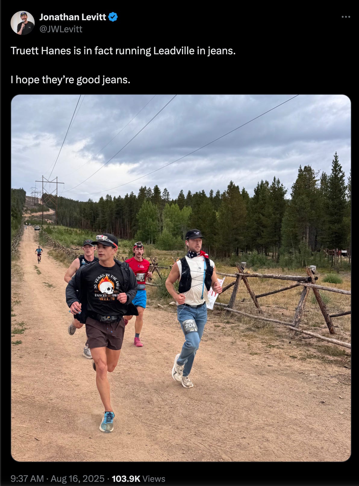 Unless their name is Truett Hanes, the guy who runs sub-three-hour marathons, in denim.