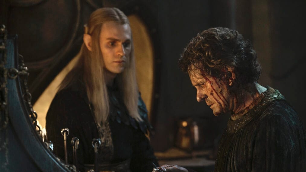 It's a masterclass in deception as he poses as an emissary of the Valar, worming his way into the trust of the Elves of Eregion, particularly the lead craftsman Celebrimbor (Charles Edwards).